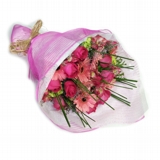 Gérberas e Rosas Vermelhas em vaso de vidro