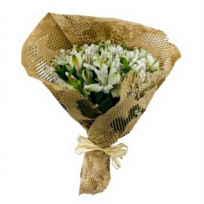 Buquê de Astromélias Brancas No Kraft Colmeia.