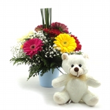 Um lindo buquê com Lírios, Astromélias, Rosas coloridas, Lisianthus, chuva de prata e Dracena