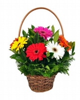 Lírios e Gérberas laranja com flores do campo e tango com lindo laço de ráfia.
