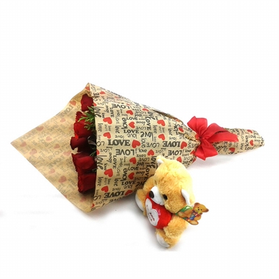 Buquê de Rosas vermelhas Love + Pelúcia