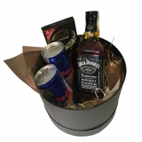 Cesta de aperitivos contendo: 4 cervejas importadas, 1 pate, 1 mine pringles, castanhas, amendoins, salame, eqlibri panetini, torradas e aperitivo mignon